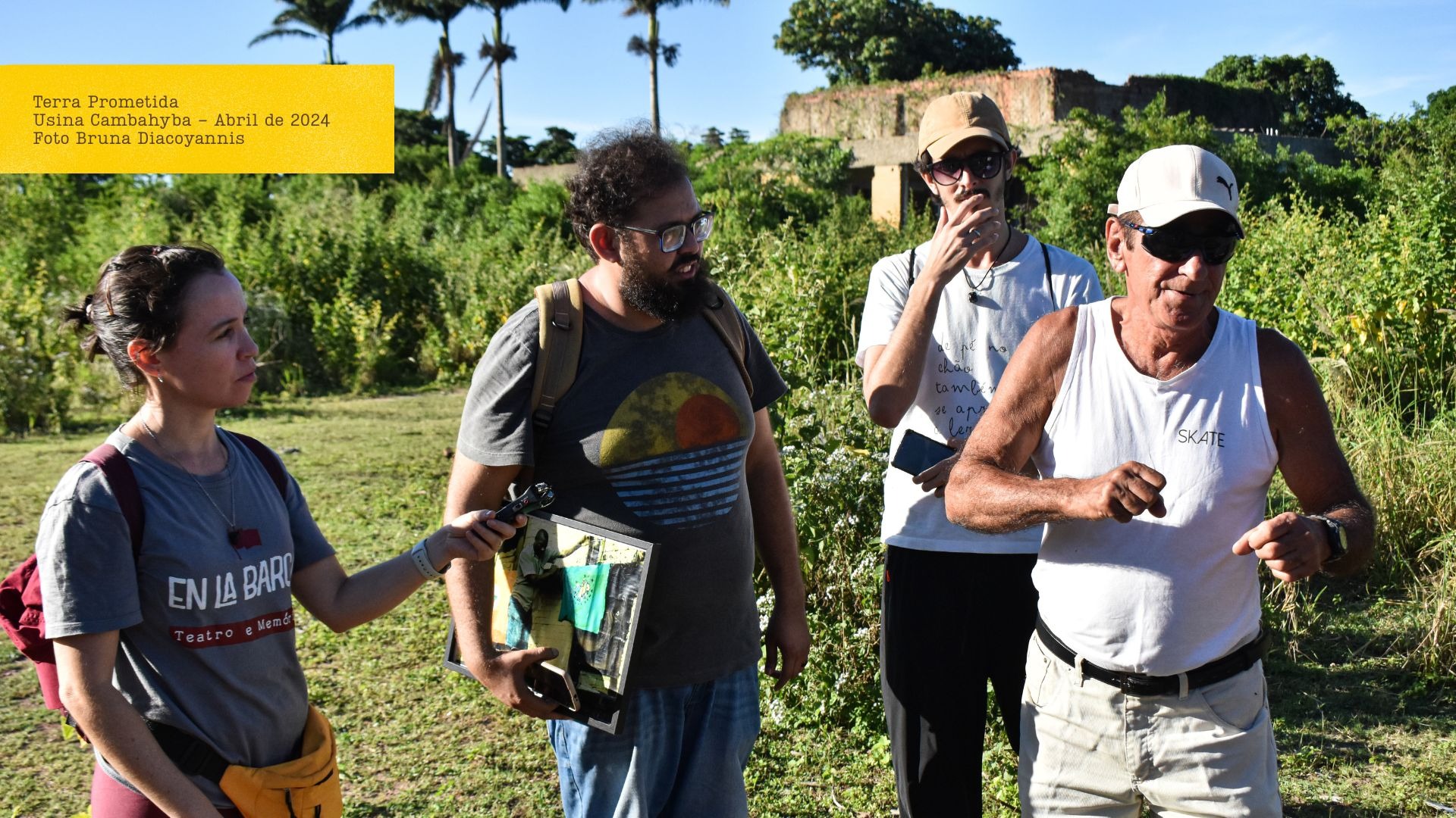 As pesquisas de campo realizadas pelo coletivo nasceram como uma exigência metodológica da criação documental e se tornaram elementos estruturantes nos processos criativos. As primeiras pesquisas de campo eram realizadas pela coordenação do coletivo e, com o tempo, passaram a integrar todo o núcleo artístico-político envolvido no projeto, mesclando artistas e colaboradores de outras áreas. As duas principais pesquisas de campo realizadas envolveram a investigação realizada em Campos dos Goytacazes-RJ, em 2024, para a criação da dramaturgia de TERRA PROMETIDA – uma antiepopeia latino-americana e a pesquisa realizada em Angicos – RN, em 2021, para a recriação de A CASA e o MUNDO lá fora – Cartas de Paulo Freire para Nathercinha. Essas duas experiências envolveram um período de 10 dias em cada cidade coletando uma série de entrevistas nos territórios, além da realização de pesquisas e intervenções artísticas nos espaços históricos investigados.